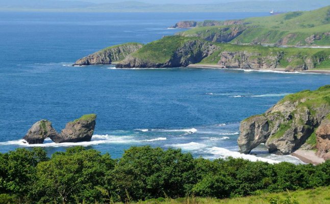 14:00-15:00 Трансфер до бухты Агатовой на полуострове Краббе с красивейшими кекурами и гротами.